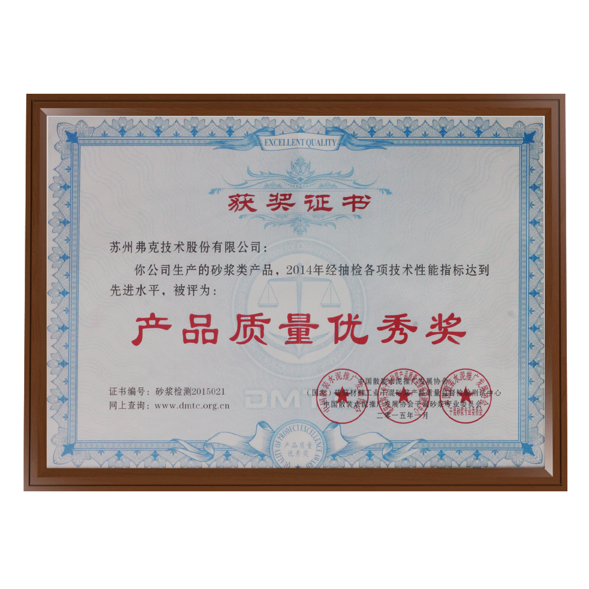 產(chǎn)品質(zhì)量?jī)?yōu)秀獎(jiǎng)證書