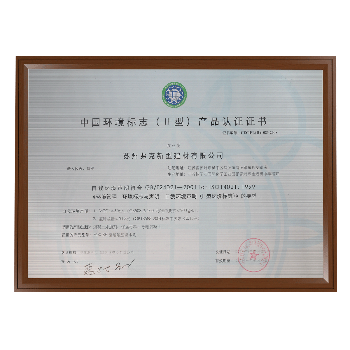 中國(guó)環(huán)境標(biāo)志產(chǎn)品認(rèn)定書
